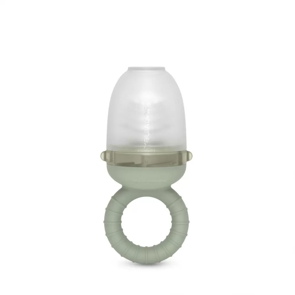 Do antidusícího krmítka lze vložit kousky ovoce a zeleniny nebo i přesnídku. Krmítko je možné vychladit v lednici či mrazáku, aby dítěti nabídlo přirozený a osvěžující zážitek. Zásobník je vyroben ze silikonu lékařské kvality a snadno se myje v myčce nádobí.