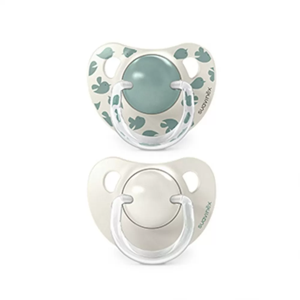 Dudlík je velkým pomocníkem pro klid Vašeho miminka, ať již při spánku nebo vycházce. Je dokázáno, že sání dudlíku uvolňuje endorfin, takzvaný hormon štěstí, který přináší miminku příjemný pocit, který ho uklidňuje a konejší. Dopřejte miminku dudlík místo prstů či pěstičky, protože tato varianta může velmi porušit dentální vývoj. Veškeré savičky i dudlíky jsou podpořeny a vyráběny ve spolupráci s Asociací španělských dětských ortodontistů a respektují přirozený vývoj dásní, zubů i patra dítěte. Barvy použité pro dekorování výrobků značky Suavinex jsou přírodní a netoxické.
