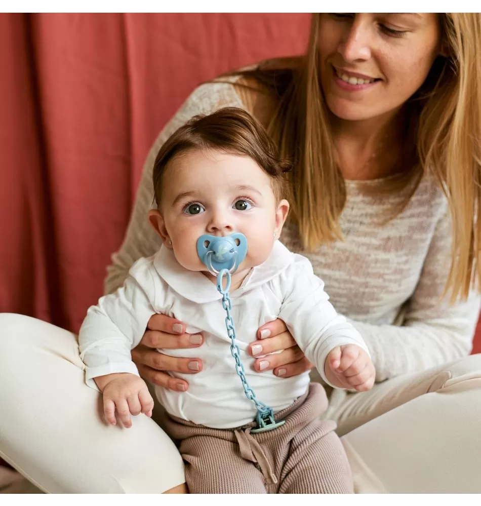 Je velkým pomocníkem pro klid vás i vašeho miminka, ať již při spánku nebo na vycházce. Je dokázáno, že sání dudlíku uvolňuje endorfin, takzvaný hormon štěstí, který přináší dítěti příjemný konejšivý pocit. Dopřejte dítěti dudlík místo prstů či pěstičky, protože tento způsob uklidňování může velmi porušit budoucí dentální vývoj. Veškeré savičky i dudlíky jsou podpořené a vyráběné ve spolupráci s Asociací španělských dětských ortodontistů a respektují přirozený vývoj dásní, zubů i patra dítěte.