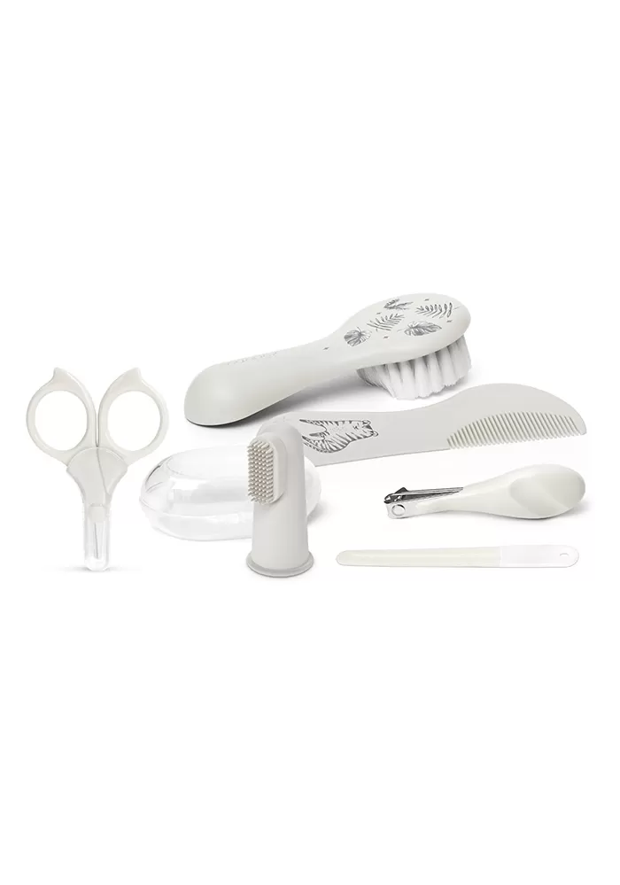 Praktická hygienická sada produktů pro péči o dítě řady Tigers značky Suavinex obsahuje základní potřeby pro každodenní péči o dětské vlásky, nehty i ústa. Všechny produkty jsou úhledně uložené v praktickém pouzdru na zip. V této sadě je šest základních pomůcek úhledně uspořádaných v praktické taštičce.